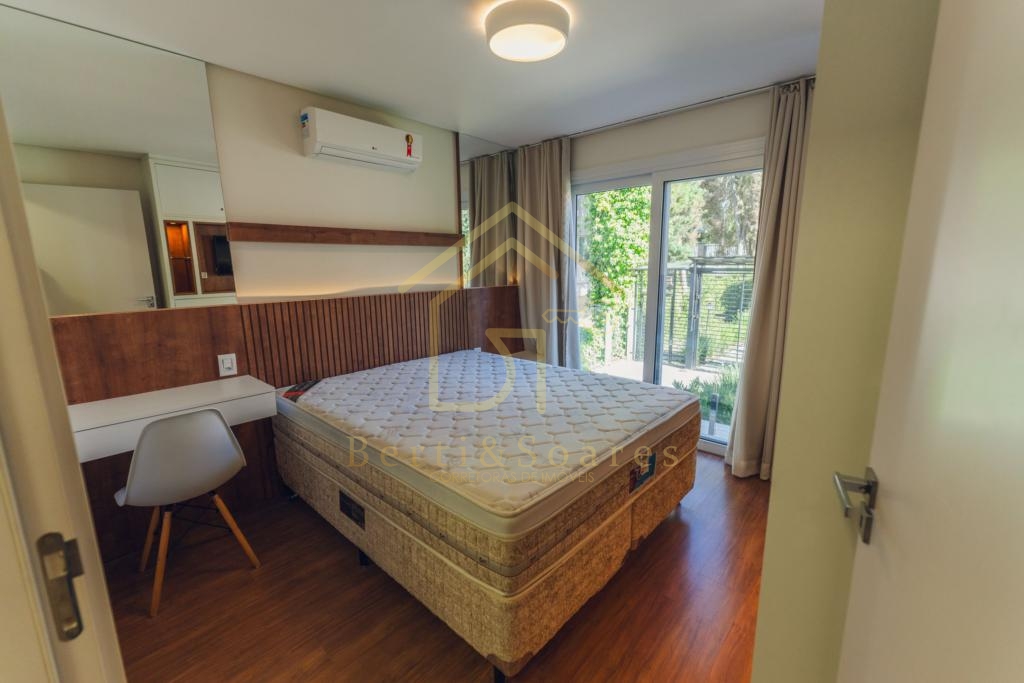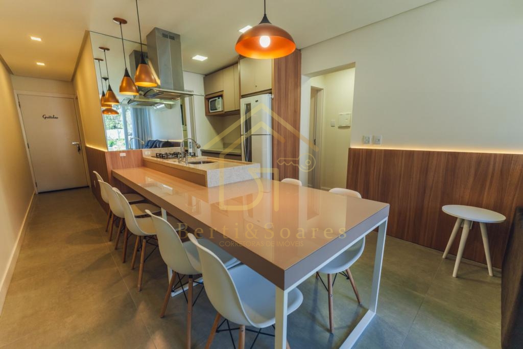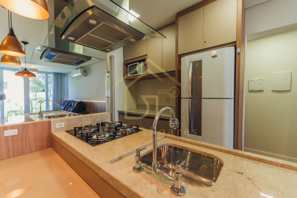 Apartamento de 70 m² privativos, 2 suítes, lavabo, possui lareira, calefação e ar condicionado split, aberturas em PVC com vidros duplos, 1 vaga de garagem.