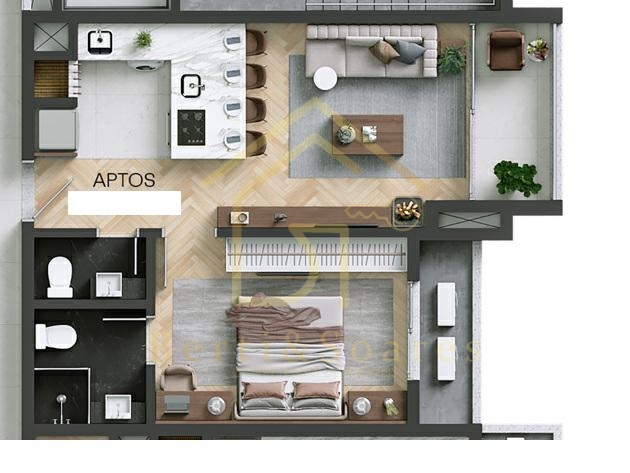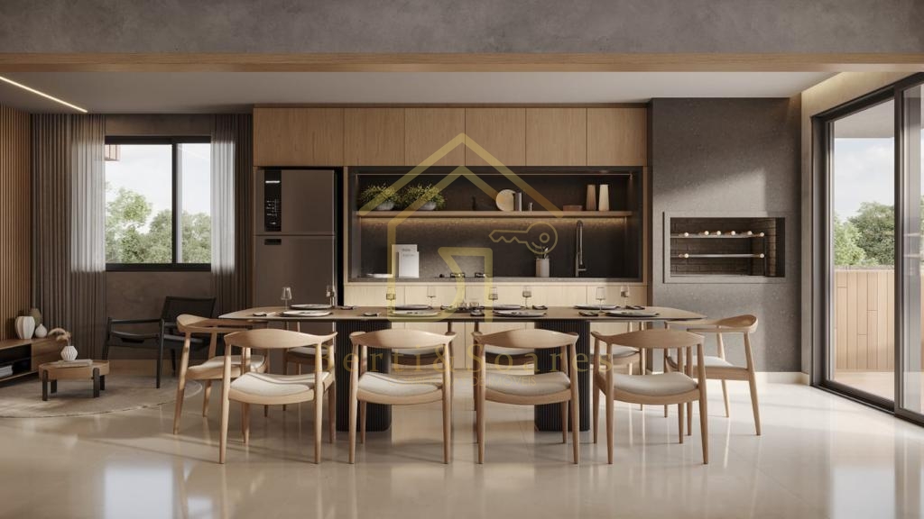 Apartamento de 1 suíte+lavabo, sala de estar e jantar integradas e cozinha com área de serviço.