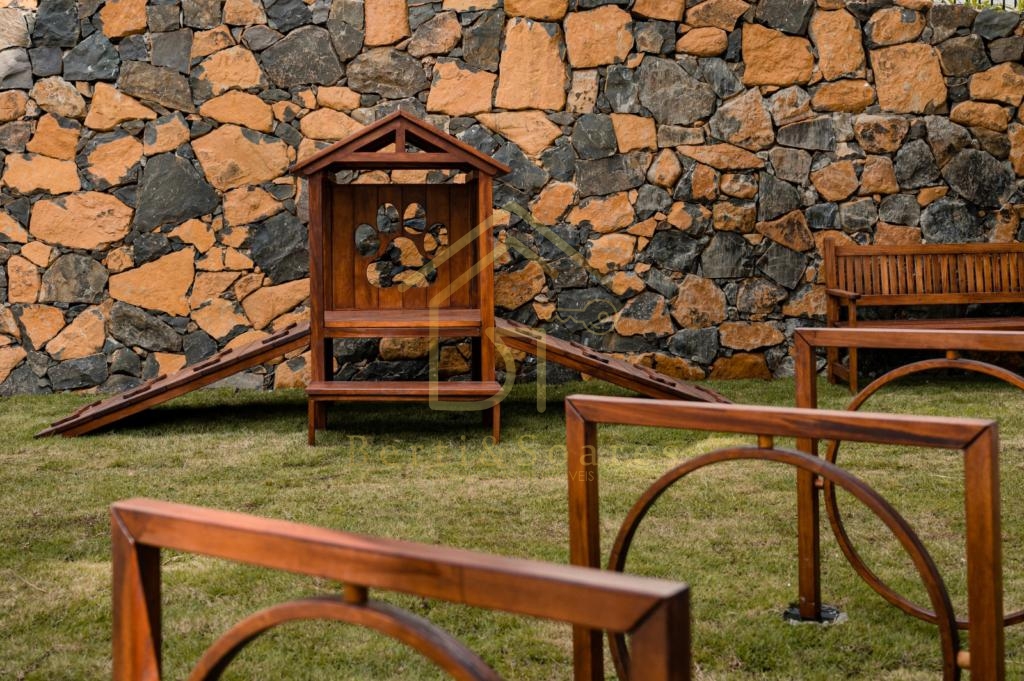 Entre as diversas características, destacam-se a piscina, jardim, garagem, e a aceitação de pets.