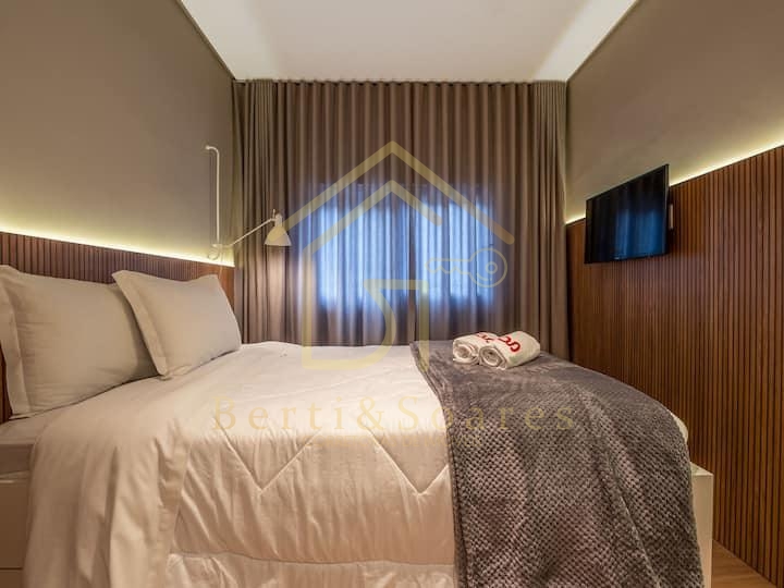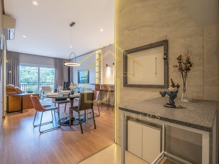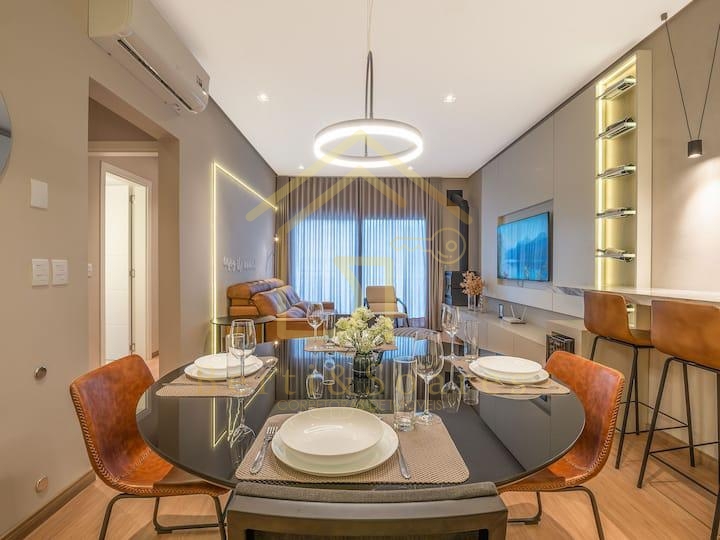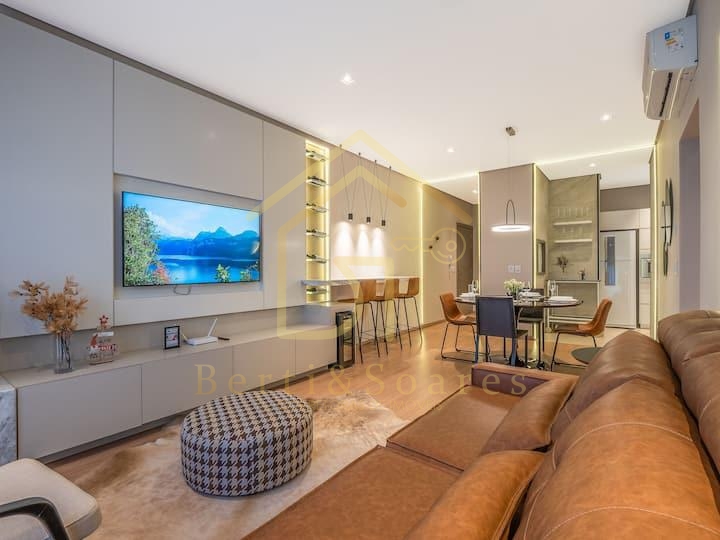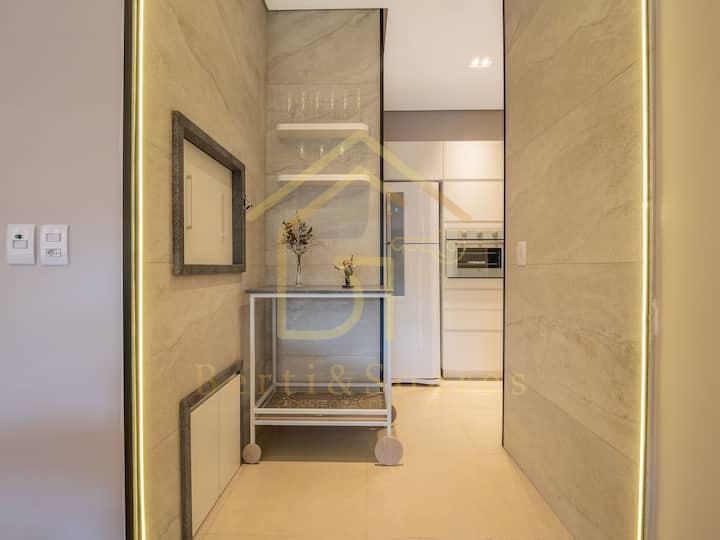 Apartamento de 02 suítes mobiliado e decorado, no centro de Gramado. Lindo apartamento em localização privilegiada, próximo a restaurantes e da Rua Coberta de Gramado. Finamente mobiliado e equipado, projeto de interiores de alta qualidade em conceito urbano e contemporâneo. Excelente opção para lazer e também como investimento para renda.
