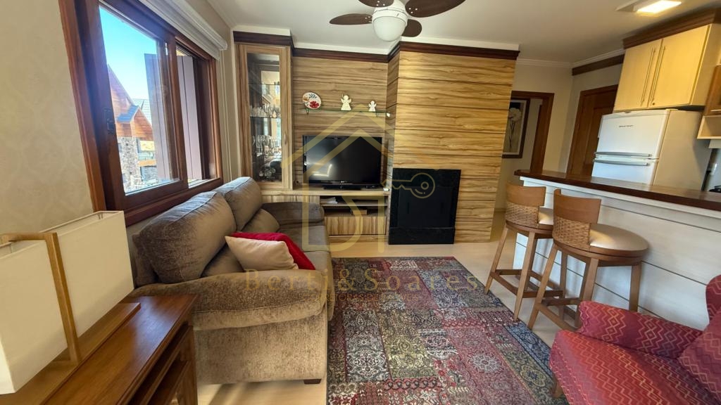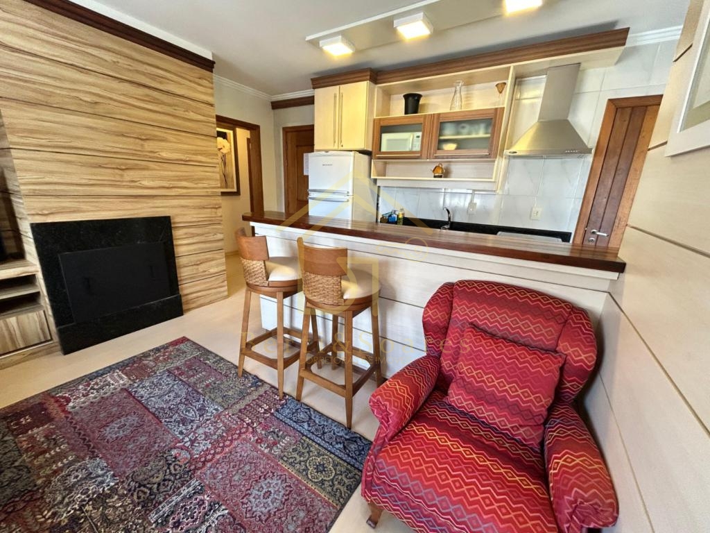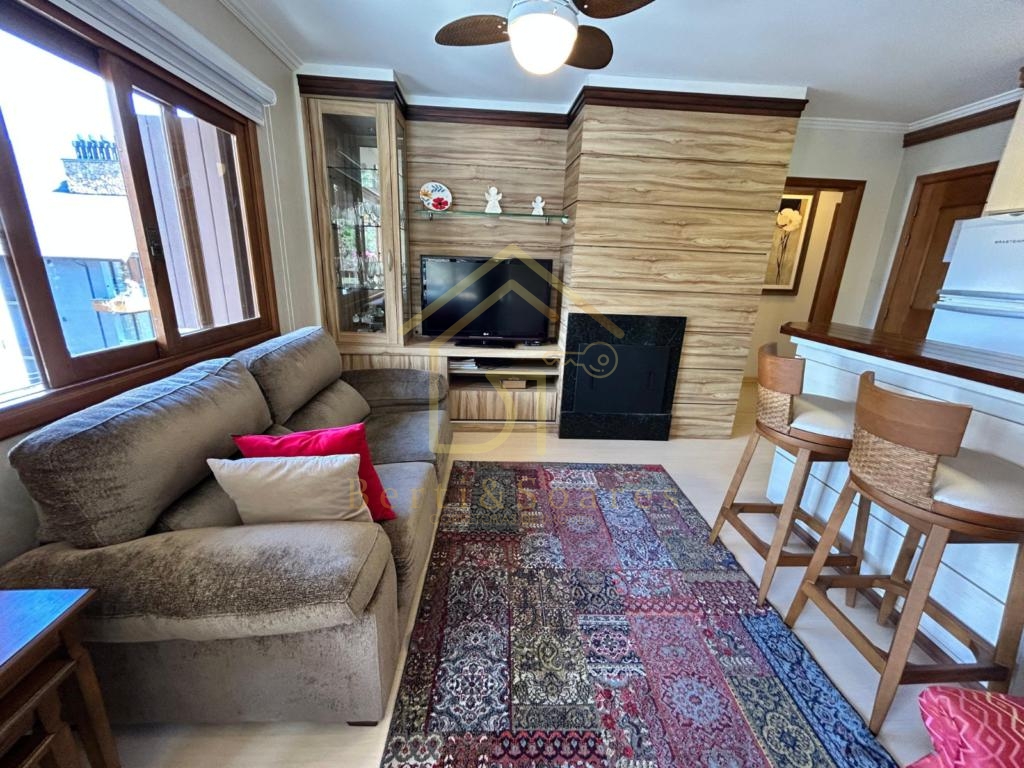 Seu apartamento no Centro de Gramado! Excelente apartamento mobiliado e equipado, localizado em andar alto e de frente. Conta com 2 dormitórios (sendo 1 suíte), banheiro social, living com dois ambientes e lareira, cozinha integrada, sacada fechada com churrasqueira e área de serviço independente. Possui calefação e splits já instalados, além de vaga de garagem. Se interessou? Entre em contato conosco e saiba mais sobre esse apartamento maravilhoso.