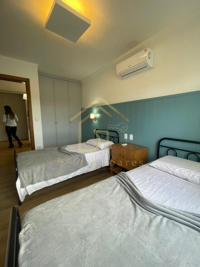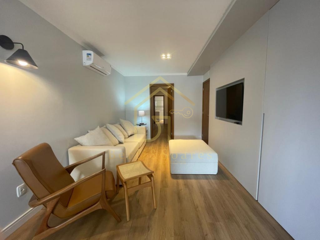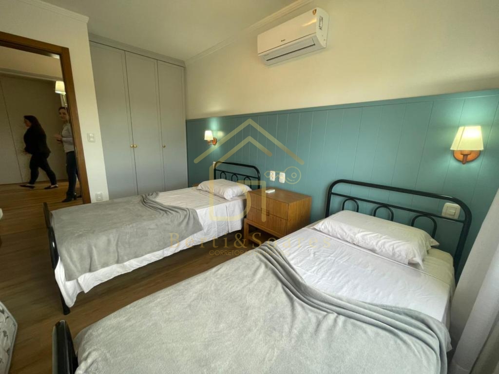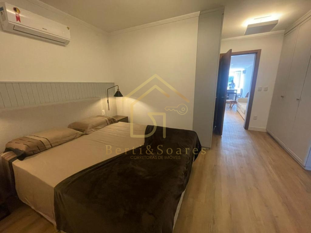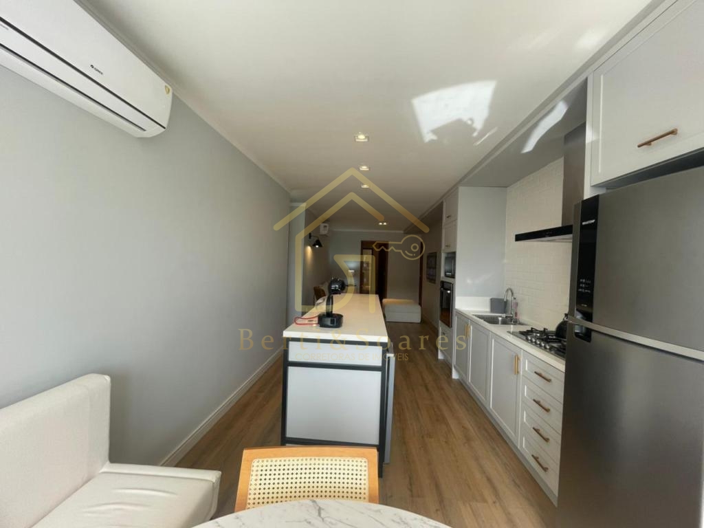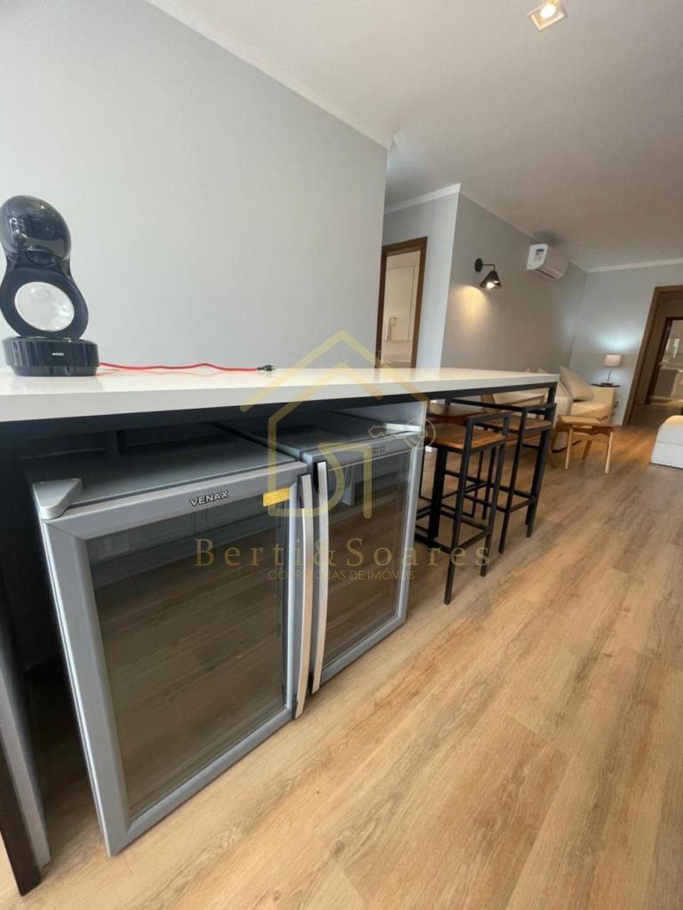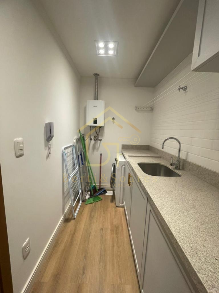 O imóvel possui dois dormitórios, sendo uma suíte + amplo living com dois ambientes, lareira, sacada e cozinha americana, proporcionando praticidade e integração. Conta também com banheiro social, área de serviço, lavanderia e garagem. Está completamente mobiliado, com móveis fixos e armários embutidos, além de ótima posição solar, gás individual, interfone e split, garantindo conforto em todas as estações do ano.
